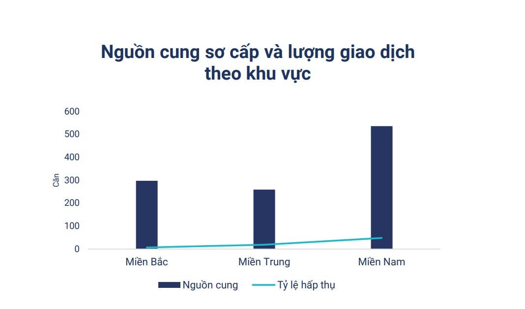 Với loại hình căn hộ nghỉ dưỡng có thời hạn sở hữu (condotel) ghi nhận nguồn cung cung sơ cấp trong quý I/2023 tập trung chủ yếu tại khu vực miền Nam với khoảng 500 căn. Trong khi đó, lượng giao dịch tập trung ở khu vực miền Nam, cụ thể là ở Bà Rịa – Vũng Tàu. Trong quý, tỷ lệ hấp thụ chỉ đạt 6,77%. Trước đó, tỷ lệ này trong quý IV/2022 là 20,7%.