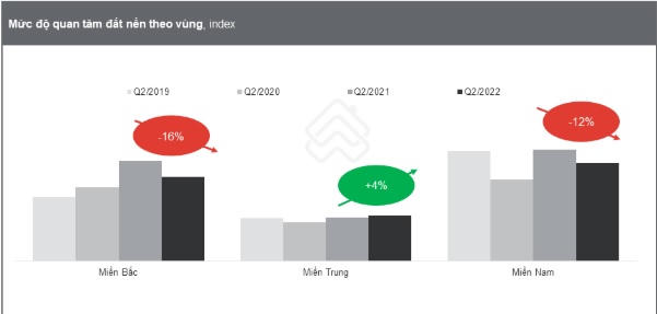 Mức độ quan tâm đến đất nền miền Bắc và miền Nam đều giảm trong quý II/2022 so với cùng kỳ năm 2021.