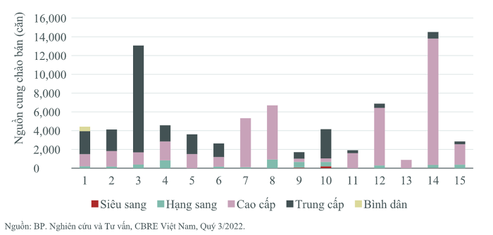 CBRE cho rằng, các yếu tố vĩ mô thay đổi nhanh chóng như việc hạn chế tín dụng, mặt bằng lãi suất tăng, các vấn đề về cấp phép tiếp diễn, trong bối cảnh thị trường quốc tế và khu vực có nhiều biến động, khiến các chủ đầu tư cũng thận trọng hơn khi mở bán sản phẩm mới. Điều này làm cho nguồn cung mới trong chín tháng đầu năm nay chưa cho thấy dấu hiệu phục hồi về mức trước đại dịch. Tuy nhiên, doanh số bán hàng duy trì ở ngưỡng tương đối khả quan, đạt 3.624 căn trong quý vừa qua.