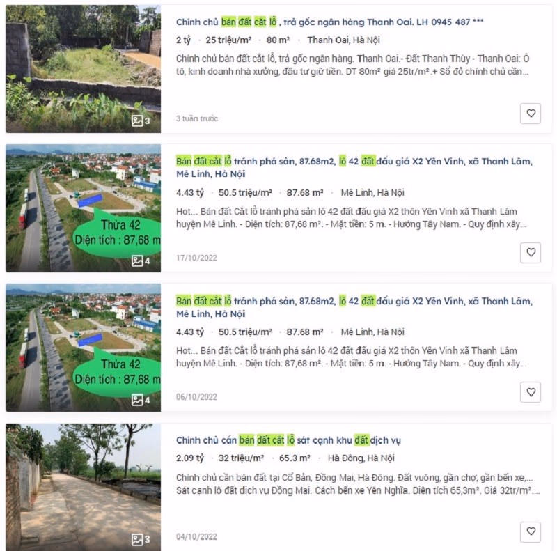 | Thông tin rao bán cắt lỗ tại 1 trang tin rao bán bất động sản. |