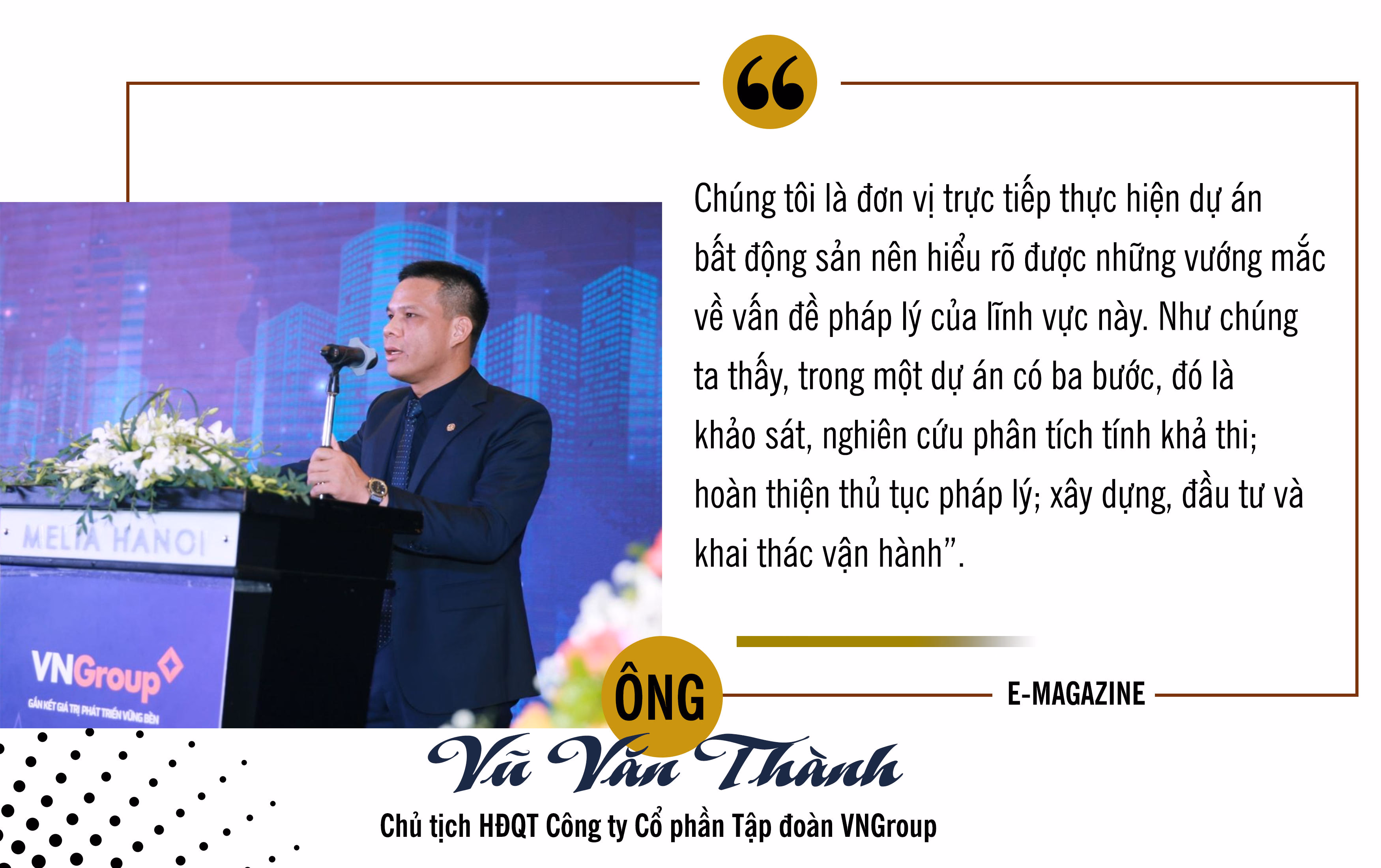 “Theo đó, với những bất cập của bất động sản nghĩ dưỡng hiện nay, với doanh nghiệp, chúng tôi luôn muốn bất động sản nghỉ dưỡng có một danh phận, tháo gỡ cả điểm nghẽn cơ chế cho loại hình này”, vị chủ tịch VNGroup nhấn mạnh.