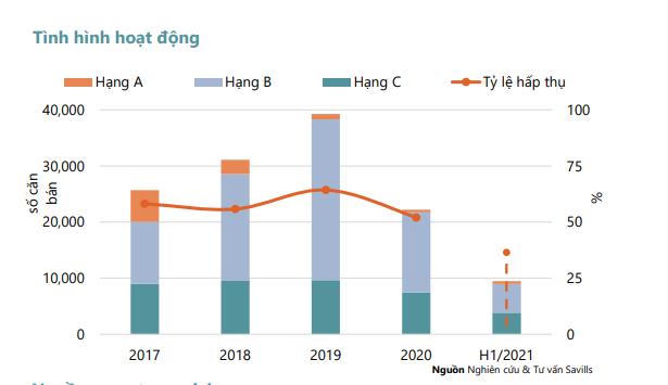 Trong bối cảnh lo lắng gia tăng do làn sóng Covid-19 thứ 4, các chủ đầu tư giảm quy mô mở bán. Nguồn cung sơ cấp giảm 13% theo quý và 27% theo năm, xuống còn 21.300 căn. Số lượng căn bán trong quý đạt khoảng 4.800, tăng 4% theo quý với tỷ lệ hấp thụ đạt 23%, tăng 4 điểm % theo quý.
