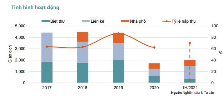 Hoạt động thị trường đạt 1.087 giao dịch, tăng 16% theo quý và 131% theo năm. Trong đó, huyện Hoài Đức dẫn đầu lượng giao dịch với 39% thị phần, theo sau bởi quận Hà Đông với 19%. Tỷ lệ hấp thụ ở mức 59%, tăng 9 điểm % theo quý và 30 điểm % theo năm.
