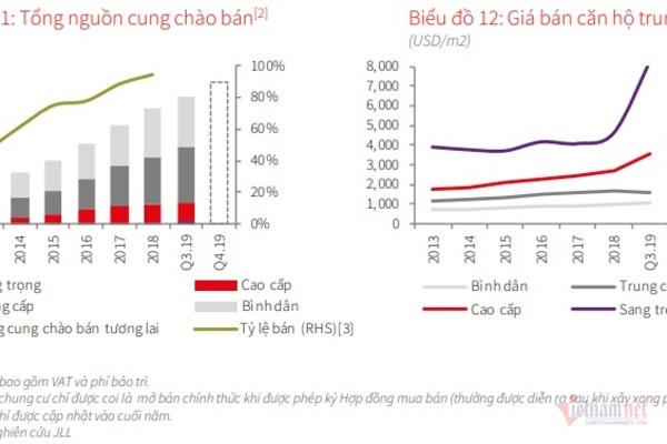 JLL Việt Nam đánh giá thị trường từ giờ đến cuối năm sẽ có sự biến động mạnh, đặc biệt là ở nguồn cung. Một số dấu hiệu khởi sắc như dự kiến khoảng 6,000 căn hộ sẽ mở bán chính thức trong Q4.19, giúp tổng lượng mở bán của năm 2019 đạt hơn 31.000 căn. Tuy nhiên, do chính sách của Chính phủ liên quan đến quy trình phê duyệt đất đai và giấy phép xây dựng ngày càng thắt chặt, nguồn cung tương lai trong năm 2020 sẽ biến động khá mạnh, dao động khoảng 40.000 – 50.000 căn.