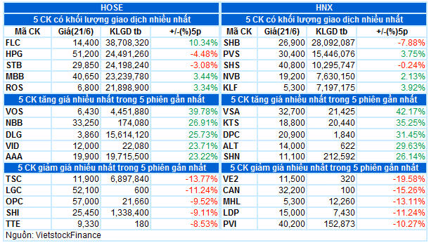 Thị trường chứng khoán 21/6: Thị trường giằng co, cổ phiếu nhỏ nổi sóng