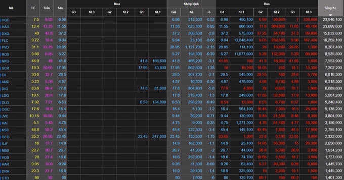 Các cổ phiếu có vốn hóa nhỏ giảm mạnh nhất, đặc biệt là những cổ phiếu họ FLC (AMD, ART, FLC, HAI, KLF, ROS), họ Louis (TGG, BII, SMT), cổ phiếu bất động sản nhà ở - vật liệu xây dựng - xây dựng (HQC, DXG, SCR, CII, DIG, LDG, OGC, NBB, DRH, CTD, HDC, VPH, QCG, DPG…) đã nằm sàn khi kết thúc phiên giao dịch.
