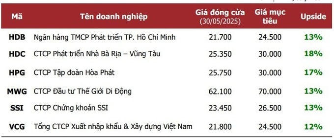 Cổ phiếu chứng khoán cũng được dự báo hưởng lợi từ quá trình nâng hạng thị trường. Trong đó, CTCP Chứng khoán SSI (mã: SSI) là một trong những công ty dẫn đầu, nhờ vị thế và năng lực đáp ứng chuẩn mực quốc tế. Quý 2/2025 dự kiến ghi nhận kết quả khả quan, nhờ hoạt động tư vấn niêm yết cho VPL và các hoạt động môi giới, cho vay ký quỹ duy trì khả năng sinh lời cao.