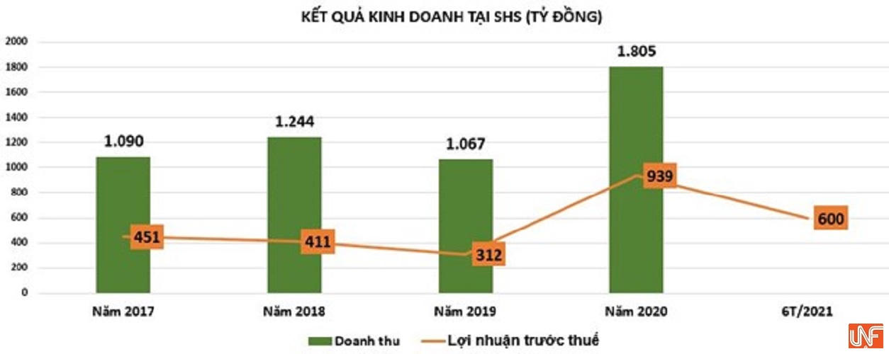 Cùng báo lãi đột biến là Chứng khoán Sài Gòn – Hà Nội (SHS). Năm 2021, SHS đặt mục tiêu doanh thu hơn 1.886 tỷ đồng, lợi nhuận trước thuế 751,2 tỷ đồng.Tổng giám đốc Vũ Đức Tiến cho biết công ty ước đạt hơn 600 tỷ đồng lợi nhuận trước thuế trong 6 tháng, tăng hơn 80% so với cùng kỳ. Lãnh đạo công ty tin tưởng nếu cuối năm không có quá nhiều biến động thì lợi nhuận sẽ cao hơn năm 2020.