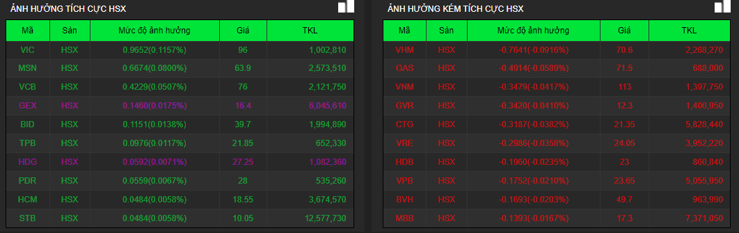 Ngược lại, nhóm cổ phiếu chứng khoán giao dịch tích cực khi VCI tăng 4,1%, HCM tăng 3,1%, SSI tăng 1,4%. Các cổ phiếu lớn như MSN, HBC, VGC, TPB… cũng giao dịch tích cực, góp phần giúp thị trường ở trạng thái cân bằng và không có biến động quá lớn.