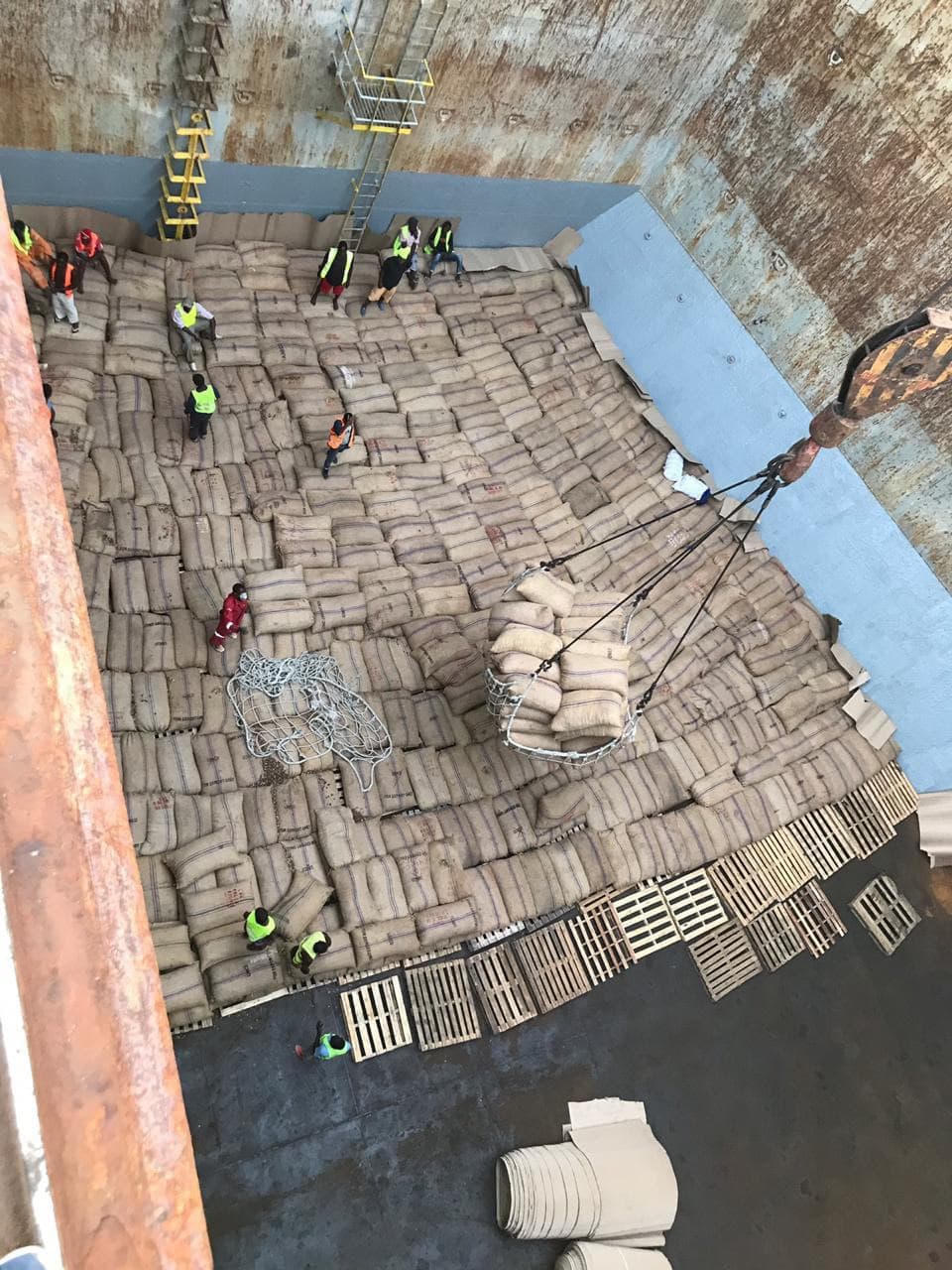 Điều thô nhập khẩu từ Tanzania được đưa lên tàu để chuyển về Việt Nam.