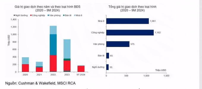 Tính đến tháng 11/2024, FDI vào Việt Nam đạt 27,26 tỷ USD, tăng gần 1,9% so với cùng kỳ năm ngoái, trong đó Singapore, Hàn Quốc, Trung Quốc và Hồng Kông là những quốc gia dẫn đầu. Thống kê trong giai đoạn 2020 - tháng 9 2024, tổng giá trị giao dịch M&A bất động sản đạt 2.94 tỷ USD, trong đó bất động sản công nghiệp là loại hình dẫn đầu với tỷ trọng 40%. Chỉ tính riêng M&A 9 tháng đầu năm 2024, bất động sản công nghiệp chiếm đến 91% trên tổng giá trị giao dịch 178 triệu USD, theo ghi nhận Cushman & Wakefield.