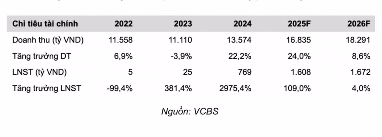 VCBS dự báo doanh thu năm 2025 của Dabaco có thể đạt hơn 26.800 tỷ đồng, tăng 24% so với năm trước. Lợi nhuận sau thuế được kỳ vọng đạt hơn 1.600 tỷ đồng – gấp đôi năm 2024. Kết quả này phần lớn nhờ giá heo vẫn duy trì ở mức cao, chi phí đầu vào thấp và đóng góp từ mảng vaccine.