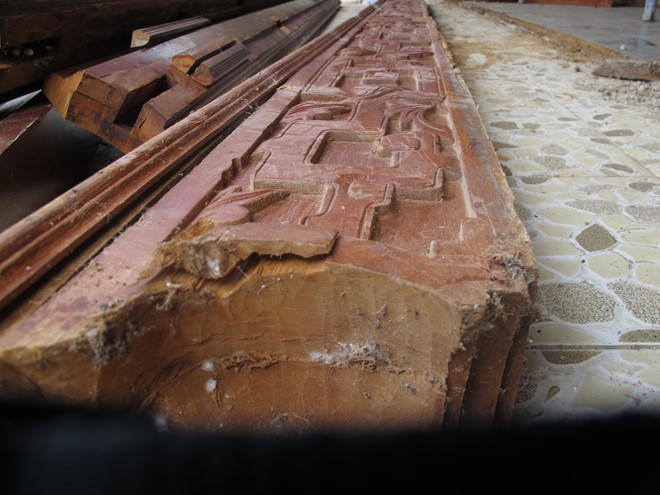 Theo lời người trông coi tại biệt phủ trái phép, ngày 15.3, một nhóm thợ mộc từ Bắc Ninh được ông Quang thuê vào Đà Nẵng để tháo dỡ những nhà rường phức tạp tại đây. “Những căn nhà rường này