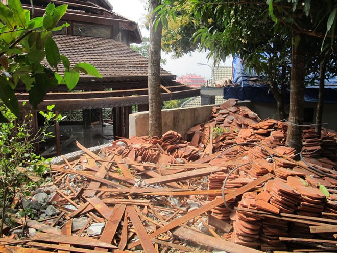 Ngói sau khi tháo dỡ được tập kết tại một góc. Ảnh: H.L