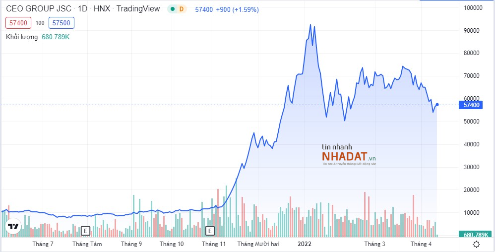Đồng thời, trên thị trường chứng khoán, sau khi tăng hơn 640% chỉ trong vòng hơn 2 tháng kể từ đầu tháng 11/2021, cổ phiếu CEO lập tức quay đầu giảm điểm từ phiên 10/01/2022. Giảm mạnh mất một nửa giá trị về vùng giá 45.000 đồng/cp. Vào đầu tháng 2 mới bắt đầu tăng trở lại. Kết phiên giao dịch ngày 13/4/2022 cổ phiếu CEO giao dịch ở mức giá 56.400 đồng/cp.
