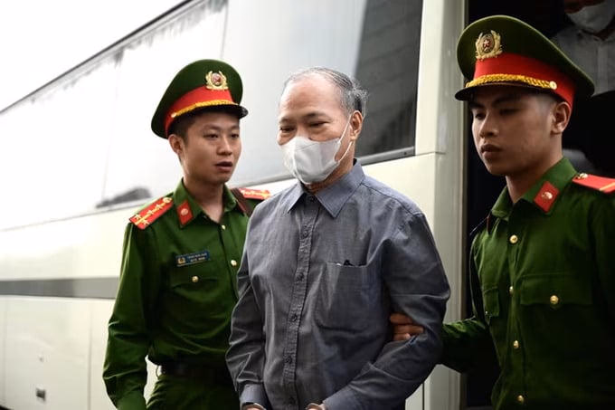 Khoảng 8h cùng ngày, những bị cáo bị tạm giam được cảnh sát dẫn giải đến trụ sở tòa án, trong số này có cựu Thứ trưởng Hoàng Văn Thắng.