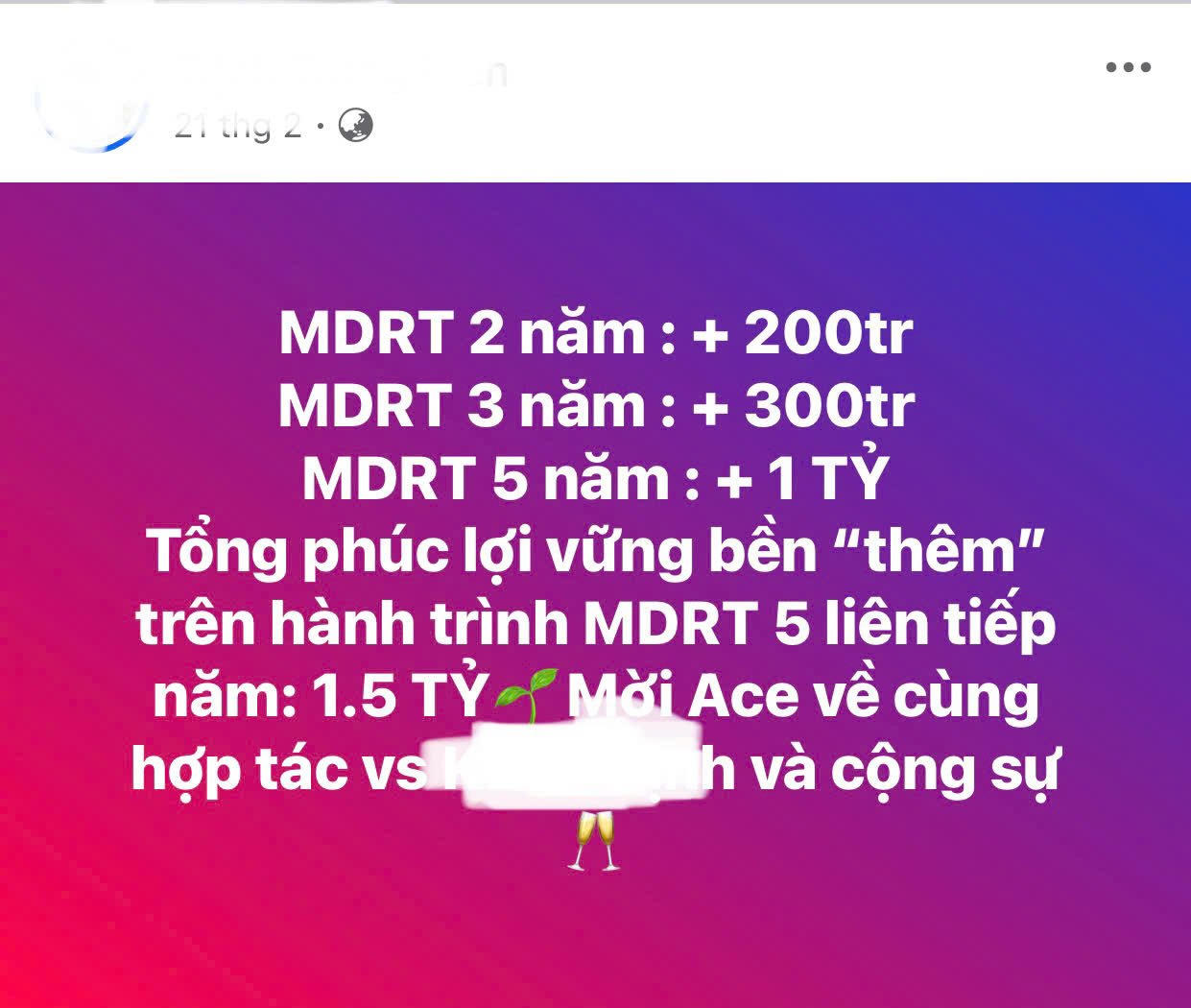 Kế đến, ông Đán cho rằng chi phí hoa hồng, thưởng kinh doanh, thưởng tháng, quý… tưởng thưởng dành cho các danh hiệu trong ngành như MDRT, COT, TOT rất cao, vài trăm triệu đến vài tỷ đồng. Các lễ vinh danh, chuyến du lịch "đẳng cấp" nước ngoài… nhằm tạo động lực cho đội ngũ bán hàng, và điều này cũng khiến các DNBH phải chi tiền rất nhiều.