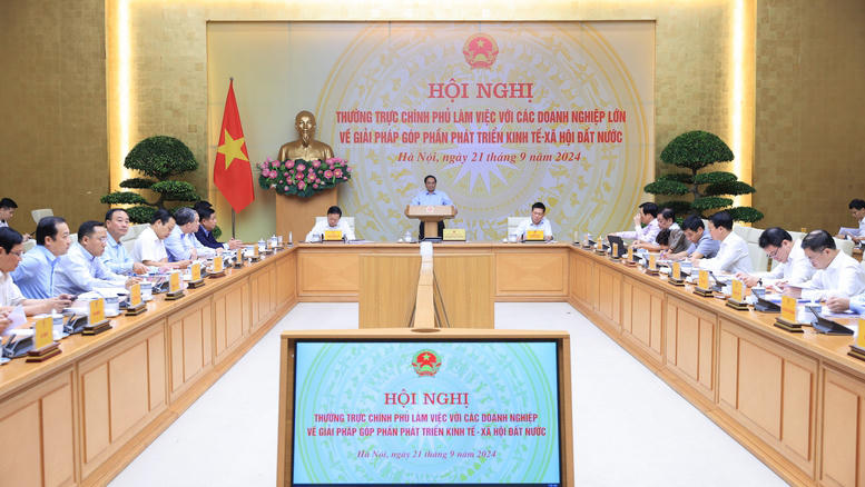 Sáng 21/9, Thủ tướng Phạm Minh Chính chủ trì hội nghị của Thường trực Chính phủ làm việc với các doanh nghiệp lớn về giải pháp góp phần phát triển kinh tế - xã hội đất nước.