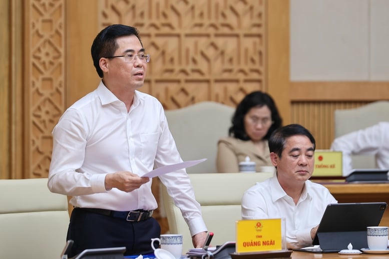 Đại diện tỉnh Quảng Ngãi báo cáo tại Hội nghị - Ảnh: VGP/Nhật Bắc