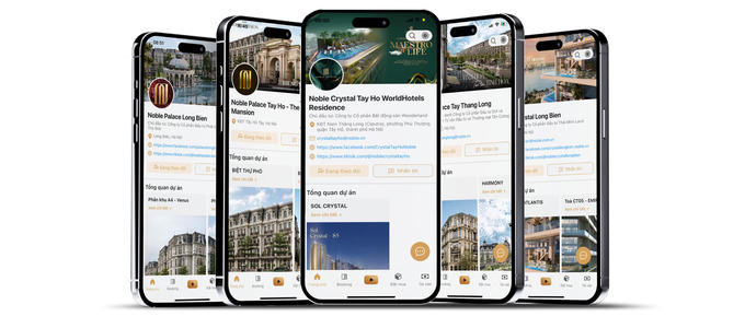 Noble App quy tụ hơn 10 tỷ USD tổng giá trị BĐS hàng hiệu đến từ những dự án cao cấp như Noble Crystal Tay Ho WorldHotels Residence, Noble Palace Tay Ho, Noble Crystal Long Bien, Noble Palace Long Bien, Noble Palace Tay Thang Long, Sunshine Green Iconic, Sunshine Sky City…