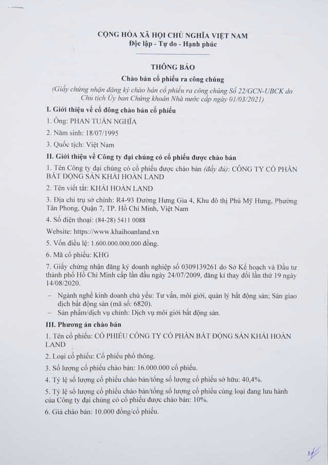 Thông tin CTCP Bất động sản Khải Hoàn Land sẽ trở thành công ty đại chúng và dự kiến sẽ niêm yết trên sàn giao dịch chứng khoán TP Hồ Chí Minh (HOSE) vào quý II/2021 đang được giới đầu tư địa ốc chú ý.