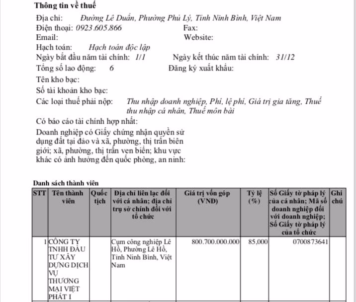 Về phía cổ đông lớn là Công ty TNHH Đầu tư Xây dựng Dịch vụ Thương mại Việt Phát I, doanh nghiệp này được thành lập vào tháng 7/2023, địa chỉ tại CCN Lê Hồ, xã Lê Hồ, huyện Kim Bảng, tỉnh Hà Nam (nay tỉnh Ninh Bình).