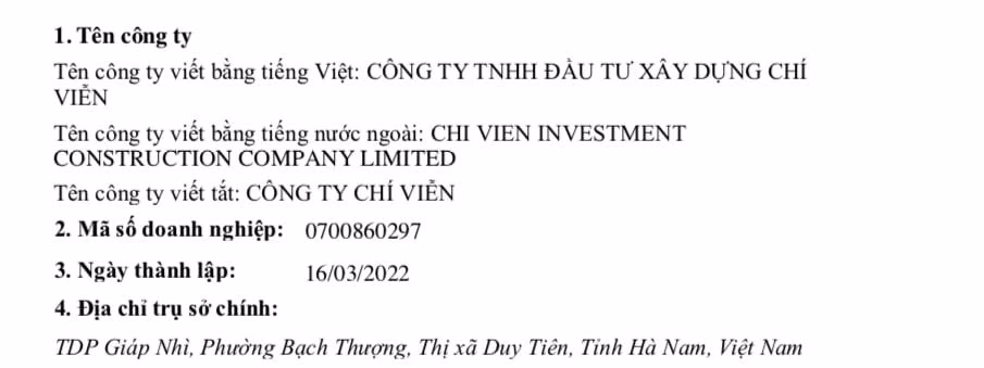 Theo thông tin trên Cổng thông tin quốc gia về đăng ý doanh nghiệp, Công ty TNHH Đầu tư Phát triển Hạ tầng KCN Thanh Bình được thành lập vào tháng 3/2022, tiền thân là Công ty TNHH Đầu tư xây dựng Chí Viễn, có trụ sở tại TP Phủ Lý, Hà Nam (nay là tỉnh Ninh Bình).