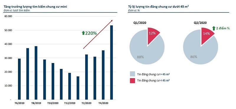 Lượng tìm kiếm căn hộ diện tích nhỏ tăng vọt vào đầu quý 2/2020. Nguồn: Batdongsan.com.vn