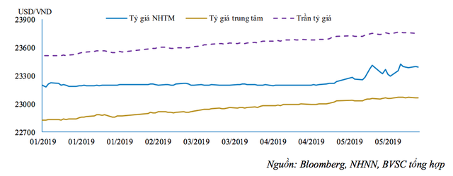 BVSC dẫn số liệu mới nhất của Tổng cục Hải quan cho hay, tính từ đầu năm đến ngày 15/5/2019, Việt Nam đã nhập siêu 1,85 tỷ USD. Đây cũng có thể là nguyên nhân, bên cạnh căng thẳng thương mại Mỹ-Trung, khiến tỷ giá tăng tương đối mạnh từ đầu tháng 5 cho tới nay.