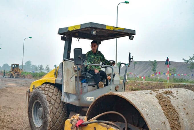 Đi theo hướng Ba La - Xuân Mai là đoạn thi công khác đang được san lấp mặt bằng, chuẩn bị cho việc thi công lắp cống. Đồng thời, tiến hành đổ xi măng dầm cầu, mặt cống.