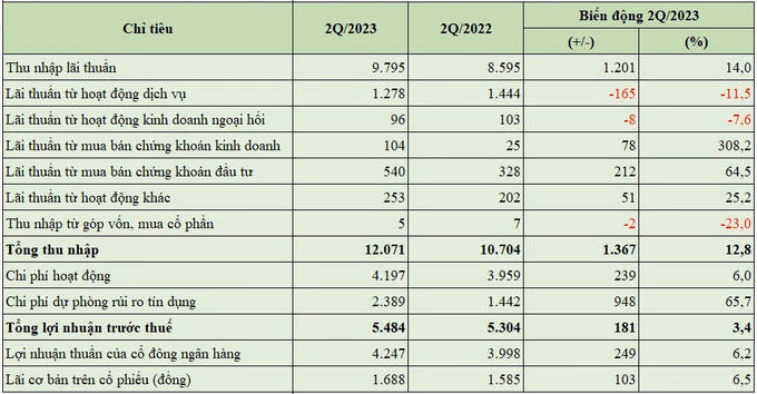 Lũy kế 6 tháng đầu năm nay, ngân hàng đạt 12.071 tỷ đồng tổng thu nhập, tăng 12,8% YoY (+1.367 tỷ đồng). Lợi nhuận trước thuế đạt 5.484 tỷ đồng, tăng 3,4% (+181 tỷ đồng) và nối mạch tăng trưởng 10 năm liên tiếp. Tỷ suất sinh lời trên vốn chủ sở hữu (ROE) đạt 22,01%, duy trì vị thế ở nhóm đầu trên thị trường. Tỷ lệ an toàn vốn (CAR) đạt 12,3%.
