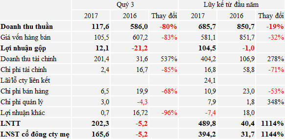 Trong quý 3, chi phí tài chính, chi phí bán hàng của QCG được tiết giảm đáng kể. Kết quả, QCG ghi nhận 165 tỷ đồng lợi nhuận sau thuế, tăng mạnh so với mức lỗ 5,2 tỷ đồng cùng kỳ 2016.