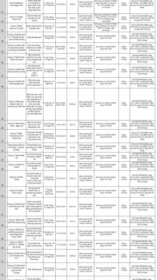Sở Tài nguyên và Môi trường tỉnh Thanh Hóa cho biết, đối với 67 dự án này đã được gia hạn trong vòng 24 tháng kể từ ngày ra các quyết định xử lý.