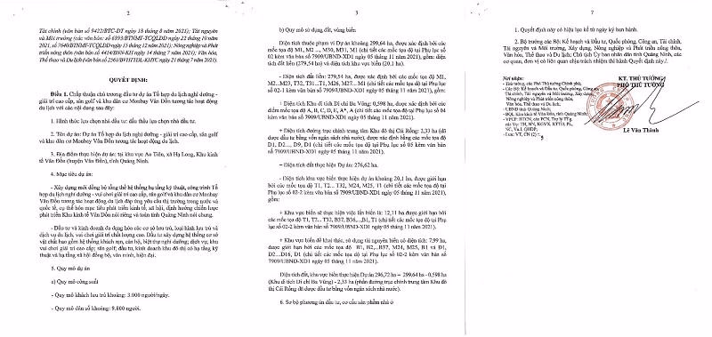 Trước đó, Thủ tướng Chính phủ đã ký quyết định số 208/QĐ-TTg chấp thuận chủ trương đầu tư dự án Tổ hợp du lịch nghỉ dưỡng – giải trí cao cấp, sân golf và khu dân cư Monbay Vân Đồn.