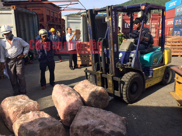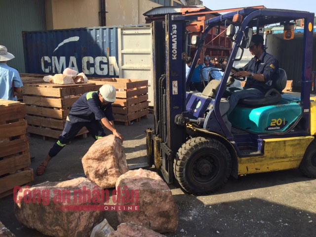 Tại hiện trường, PV CAND Online ghi nhận, thủ đoạn các đối tượng sử dụng rất tinh vi. Lực lượng chức năng sau khi khám container thứ nhất không phát hiện được hàng cấm. Tuy nhiên, khi kiểm tra sang container thứ 2, lực lượng chức năng phát hiện các khối đá có dấu hiệu bất thường.