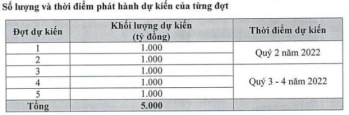 Eximbank dự kiến phát hành thành 5 đợt, mỗi đợt 1.000 tỷ đồng. Trong đó hai đợt đâu phát hành dự kiến vào quý II và 3 đợt sau dự kiến phát hành vào quý III và quý IV/2022.