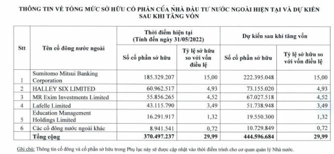 Cụ thể, ngân hàng dự kiến phát hành hơn 245,8 triệu cổ phiếu để chi trả cổ tức tỷ lệ 20%, cổ đông sở hữu 100 cổ phiếu EIB sẽ được nhận số cổ phần mới tối đa là 20 cổ phần. Nguồn vốn phát hành từ nguồn lợi nhuận sau thuế, sau trích lập các quỹ năm 2017, 2018, 2019, 2020 và 2021. Sau khi hoàn tất phát hành, vốn điều lệ của ngân hàng dự kiến tăng lên mức 14.814 tỷ đồng.