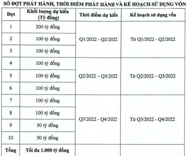 Kỳ hạn của lô trái phiếu này là tối đa 7 năm, phát hành thành nhiều đợt (tối đa 10 đợt). Lãi suất dự kiến cho đợt trái phiếu đầu tiên là 8,6%; các đợt sau tùy thuộc theo tình hình thị trường và tối đa là 9%.