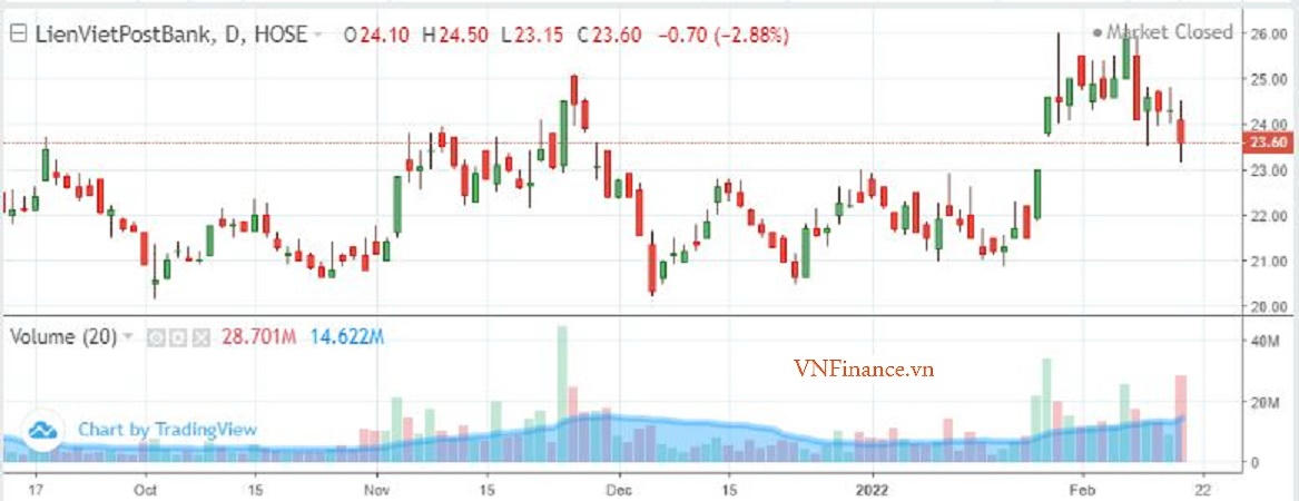 Ngay sau khi thông tin trên được công bố, trong phiên (26/1), cổ phiếu LPB tăng kịch trần, đóng cửa ở 24.600 đồng/cp. Khối lượng giao dịch của mã này tăng đột biến lên gần 34,5 triệu đơn vị. Mã này tăng kịch trần phiên thứ hai liên tiếp.