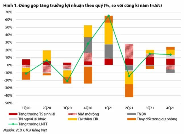 Theo báo cáo cập nhật về Ngân hàng TMCP Ngoại Thương Việt Nam (Vietcombank), Chứng khoán Rồng Việt (VDSC) kỳ vọng lợi nhuận trước thuế năm 2022 của Vietcombank sẽ đạt 36.758 tỷ đồng, tăng 34% so với cùng kỳ, nhờ vào giảm trích lập dự phòng (giảm 36% so với cùng kỳ).