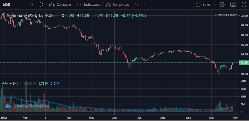 Giao dịch của ông Phạm Lê Việt Anh diễn ra trong bối cảnh giá cổ phiếu MSB đã lao dốc mạnh trong những tháng gần đây. So với cuối tháng 8, giá cổ phiếu này đã giảm gần 20% và mất gần nửa giá trị so với hồi đầu năm.