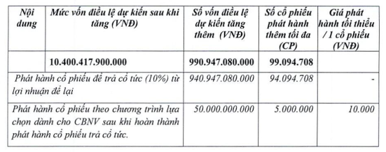 Tương tự, ngân hàng SHB dự kiến phát hành gần 1 tỷ cổ phiếu, tăng vốn điều lệ lên 36.459 tỷ.