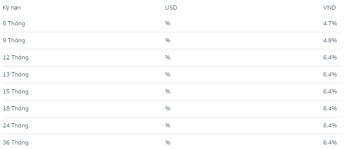 Đối với hình thức gửi tiết kiệm online, lãi suất kỳ hạn 1 tháng tăng lên 4,6%/năm, kỳ hạn 3 tháng tăng lên 4,9%/năm, cao hơn 1,2-1,3% so với biểu lãi suất cũ. Kỳ hạn 12 tháng, 24 tháng hình thức gửi online có mức lãi suất cao nhất là 6,8%/năm, tăng 1% so với trước đó.