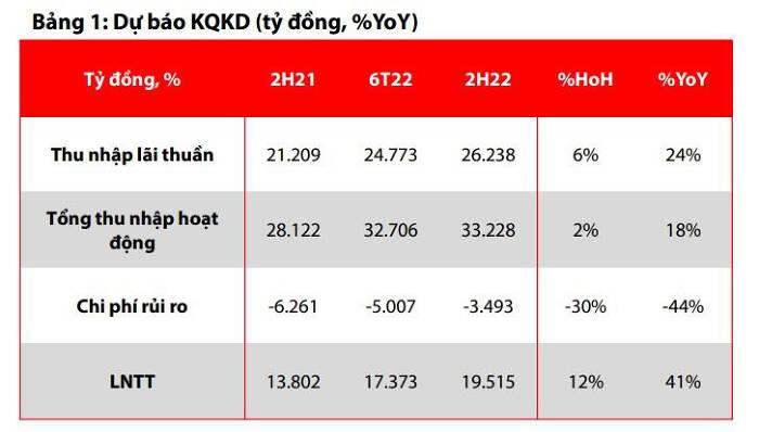 Với mức trích lập thận trọng trong nửa đầu năm, VDSC cho rằng ngân hàng sẽ dễ dàng vượt qua biến động từ việc phân loại lại nợ cơ cấu trong nửa cuối năm. Tăng trưởng bảng cân đối vẫn sẽ tích cực dù hạn mức tăng trưởng tín dụng không chắc chắn. NIM dự kiến đi ngang so với nửa đầu năm ở mức 3,3% dù lãi suất huy động tăng.