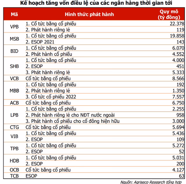 Cụ thể, ngân hàng sẽ tăng vốn điều lệ thêm 5.030 tỷ đồng thông qua phát hành hơn 503 triệu cổ phiếu trả cổ tức năm 2021, tỷ lệ 25% tức cổ đông sở hữu 100 cổ phiếu được nhận 25 cổ phiếu phát hành thêm, dự kiến hoàn thành trong quý III/2022. Nguồn vốn để phát hhành từ lợi nhuận chưa phân phối đã được kiểm toán và trích lập đầy đủ các quỹ theo quy định.