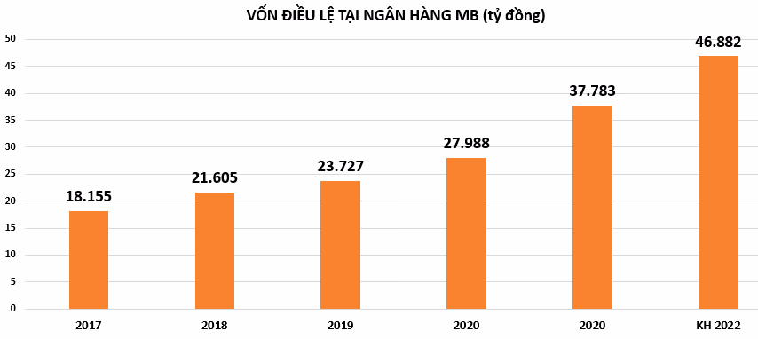Trước đó, ĐHĐCĐ 2022 của MB đã thông qua kế hoạch tăng vốn điều lệ từ 37.783 tỷ đồng lên 46.882 tỷ đồng. Tổng mức dự kiến tăng thêm hơn 9.099 tỷ đồng.