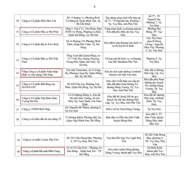 Hải Phát, Hano – Vid, Nam Cường, Vinaconex,… cùng các đại gia địa ốc bị “nêu tên” vì không báo cáo thông tin dự án tại Phú Yên.
