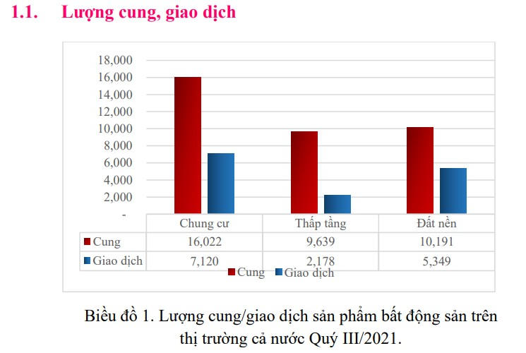 Theo báo cáo quý III/2021 của Hội Môi giới BĐS Việt Nam (VARS) hết quý III/2021 hầu hết các dự án phát triển bất động sản trên cả nước, đều phải dừng xây dựng, thi công vì lệnh giãn cách và đứt gẫy chuỗi sản xuất, cung ứng nguyên vật liệu và thiết bị. Những dự án đang trong quá trình chuẩn bị đầu tư không thể triển khai vì cơ quan chính quyền các tỉnh thành cũng phải tập trung chống dịch làm nguồn cung trên thị trường vốn dĩ đã thiếu hụt không có cơ hội để cải thiện.