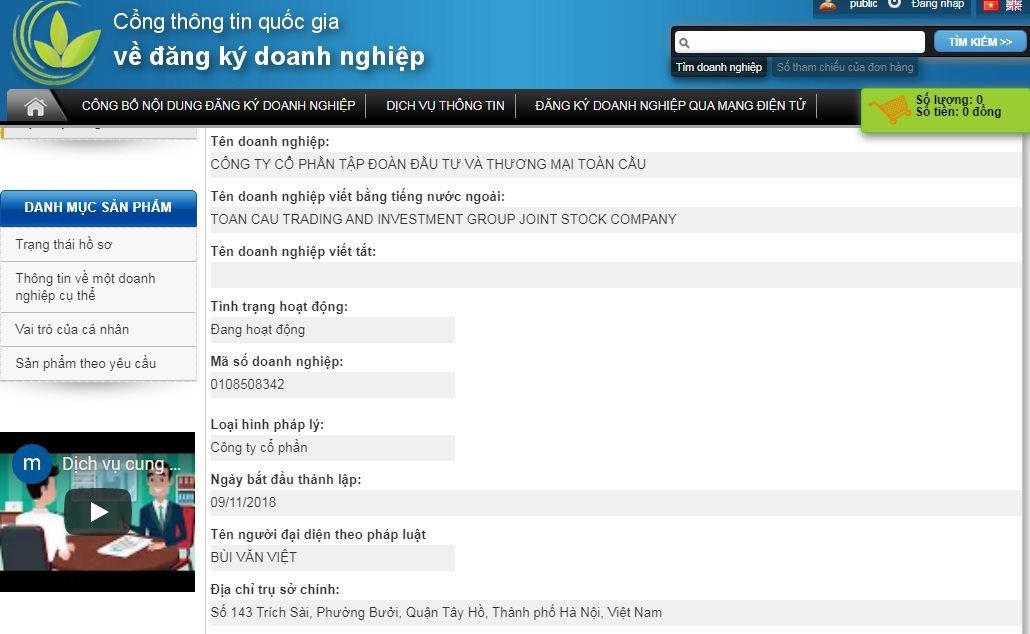 Theo số liệu được Phòng Đăng ký Kinh doanh, Sở Kế hoạch và Đầu tư (KH-ĐT) Hà Nội gửi Cổng thông tin đăng ký kinh doanh, Bộ KH-ĐT: "Siêu doanh nghiệp" gần 128.000 tỷ đồng ban đầu (tháng 11/2018) chỉ là doanh nghiệp 132 tỷ đồng do 5 cá nhân sáng lập là ông Bùi Văn Việt (nắm 18% vốn điều lệ), bà Phạm Thị Thành (nắm 36% vốn điều lệ), ông Đào Xuân Hậu (nắm 18% vốn điều lệ), ông Đỗ Công Đảng (nắm 18% vốn điều lệ) và ông Trần Đức Thủy (nắm 10% vốn điều lệ).