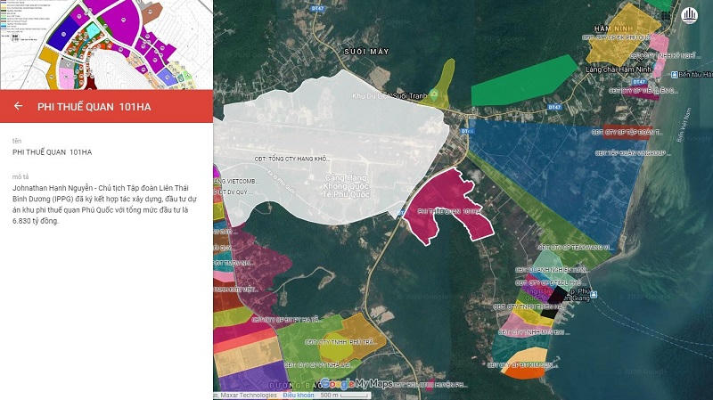 Theo đó, dự án này quy mô hơn 104 ha. Trong đó, đất Khu phi thuế quan khoảng 101,5 ha, còn lại là đất giao thông đường trục Bắc Nam. Dự án do Công ty TNHH Xuất nhập khẩu Liên Thái Bình Dương (IPPG) của ông Johnathan Hạnh Nguyễn làm chủ đầu tư.